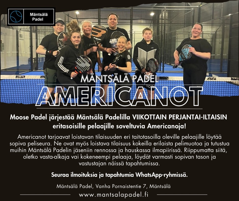 Padel järjestää VIIKOTTAIN eritasoisille pelaajille soveltuvia AMERICANOJA perjantai-iltaisin!